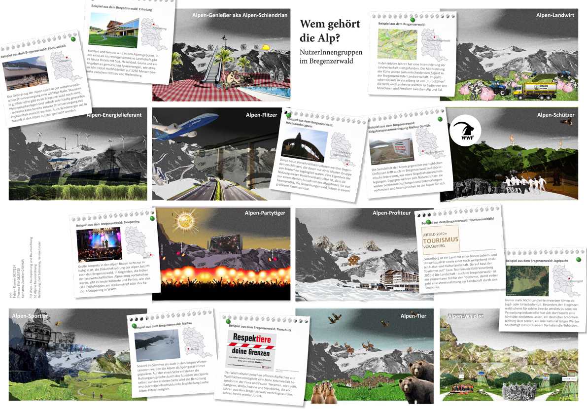 Abzuleiten aus der Phänomenologie, wonach nur das was wir benennen, zeichnen, beschreiben, besingen, aufführen auch Wirklichkeit werden kann, werden Techniken der Visualisierung (der Inszenierung) recherchiert, entwickelt und am konkreten Beispiel ausgewählter Regionen erprobt und kommentiert.