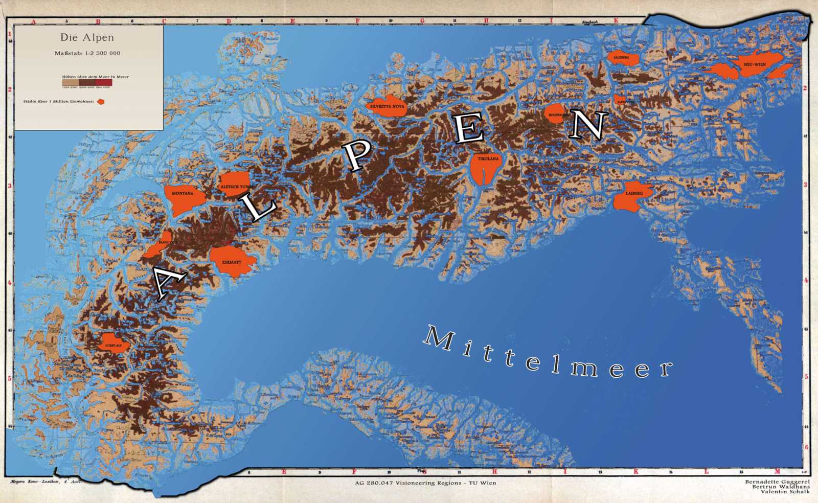 Bei der Lehrveranstaltung „Visioneering Regions“ gelangen unterschiedliche Methoden oder Methodenkombinationen zum Einsatz wie z.B. mentale Landkarten, story-telling, mind-mapping, future links, provokative Kartographie, unkonventionelle Erklärgrafiken, Raum-Puzzles, Grob- und Fein-Scans, Scribbles, Inversmethoden, Raummuster, Video, Fotodokumentationen, gebaute Modelle. Vergangenheits-, Gegenwarts- oder Zukunftsbilder (Vision, Leitbilder)
